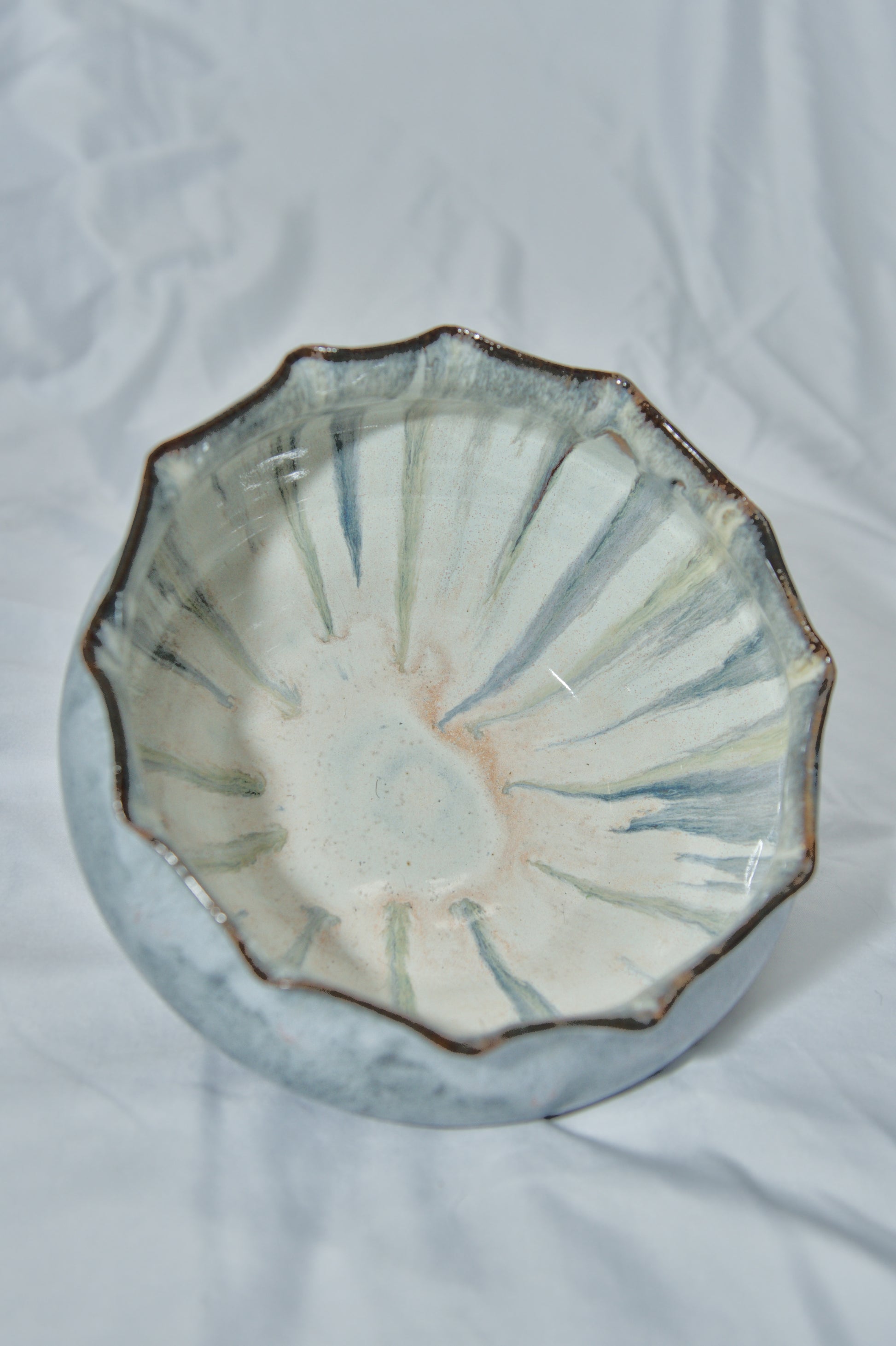 Made in durable stoneware, this decorative bowl embraces uniqueness in shape and color. Perfect as a catch-all, a tabletop accent, or a simple sculptural piece on open shelving. This is a "clear my shelves" piece and is offered at a discount.